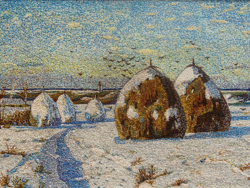 Усі вони вишиті шовком в авторській техніці на раритетній швейній машинці «Чайка». Шовкова нитка з точністю до відтінку відтворює всі мазки й штрихи великих майстрів живопису, сповна передає глибину й багатогранність фарб.