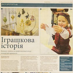 На другому поверсі Центру традиційну українську іграшку презентували 15 майстрів. «У магазинах було все, що можна придбати, але нам то було не цікаво – купити й націпати на ялинці, штука була зробити самим», - розповів Іван Гречко, колекціонер гуцульських старожитностей зі Львова, який привіз до Києва понад 50 унікальних сімейних ялинкових прикрас, зокрема паяців з видутих яєць, різноманітні зірки, ланцюжки, сніжинки, ляльки. За словами пана Івана, до новорічних свят у його родині діти готувались від пізньої осені.
