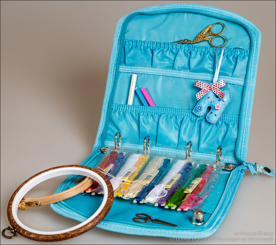 За результатами завершення курсу, найкращому майстру надається подарунок – дорожня сумка для вишивки J В неї завжди ви зможете скласти і взяти з собою все, що дозволить бути зі своїм хобі.