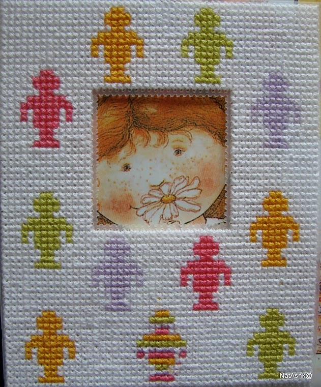 Заняття №7 - творчість на однотонній канві Аіда різнокольоровими муліне. Це заняття дозволить розібратися у схемах з багатьма кольорами, "приручити" органайзери для ниток, побачити, як від розміру хрестика змінюється розмір готової роботи.