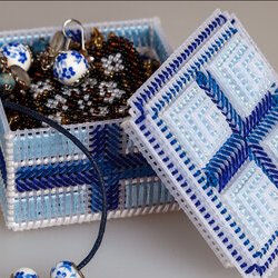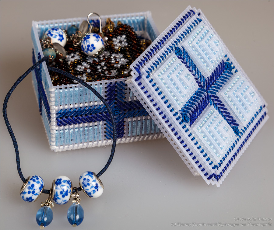 Заняття №11 - на заключних заняттях буде можливість вишити і зібрати вручну коробочку для збереження прикрас і корисних дрібничок. Передбачається вишивка на пластмасовій канві з використанням різних видів швів - прямих, "назад голку", французьких вузликів.
