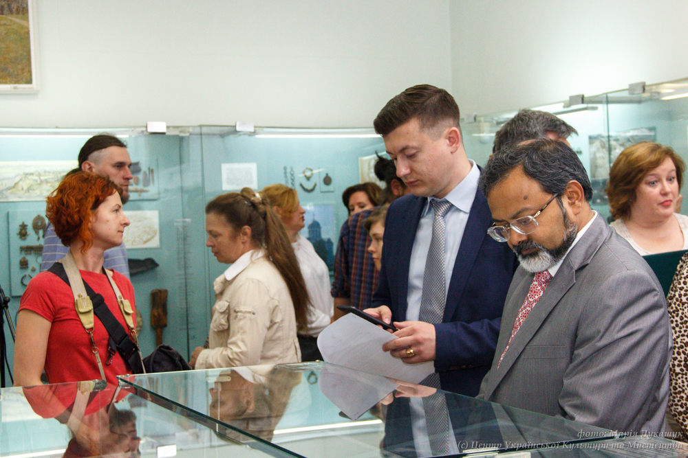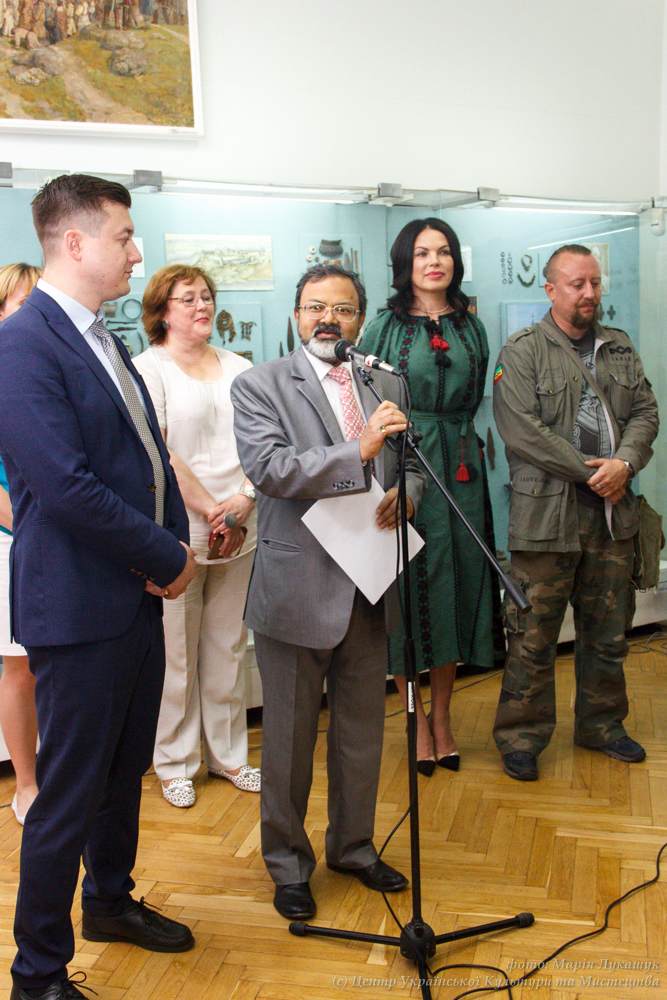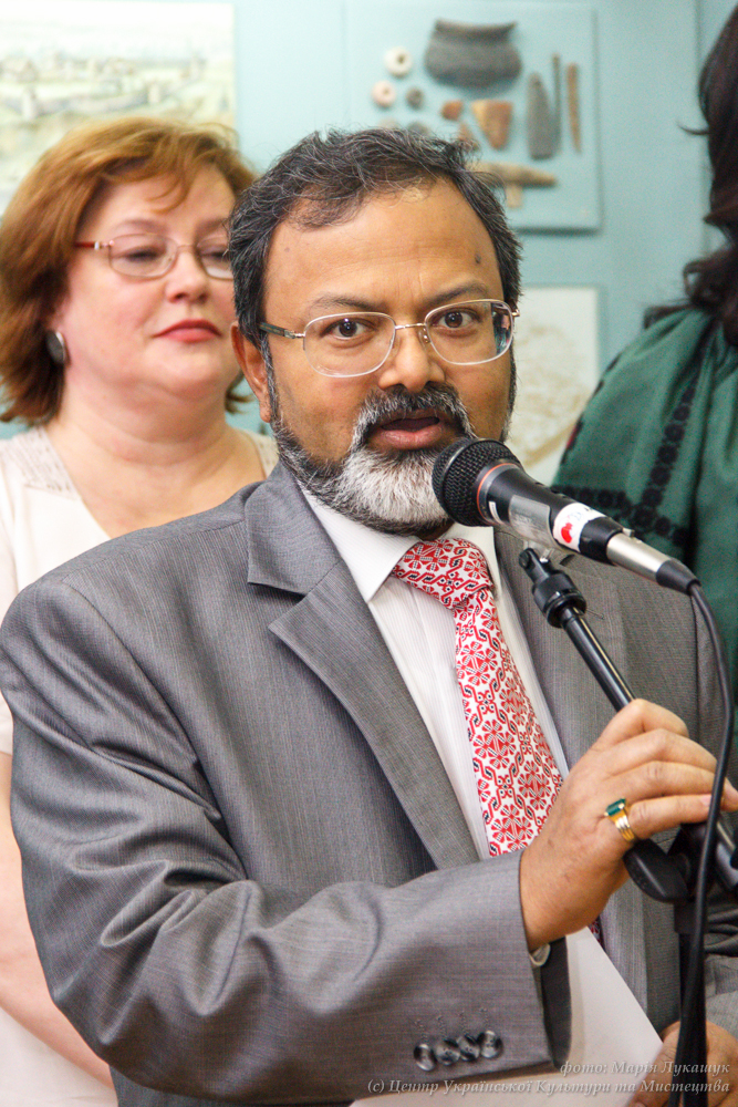 Надзвичайний і Повноважний посол Індії Манодж Кумар Бхарті на відкритті виставки «Князі та гончарі: нові дослідження посаду давньоруського Вишгорода», 14 червня 2017 р.