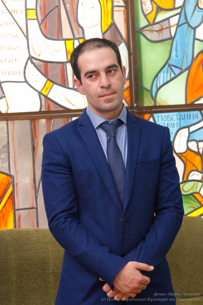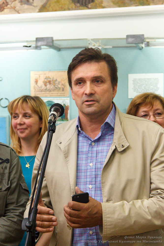Юрій Кармазін на відкритті виставки «Князі та гончарі: нові дослідження посаду давньоруського Вишгорода», 14 червня 2017 р.