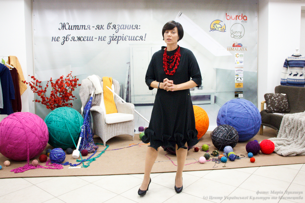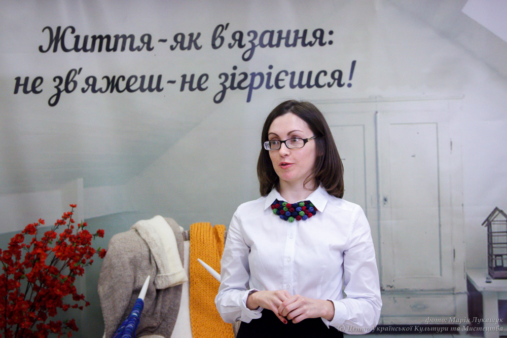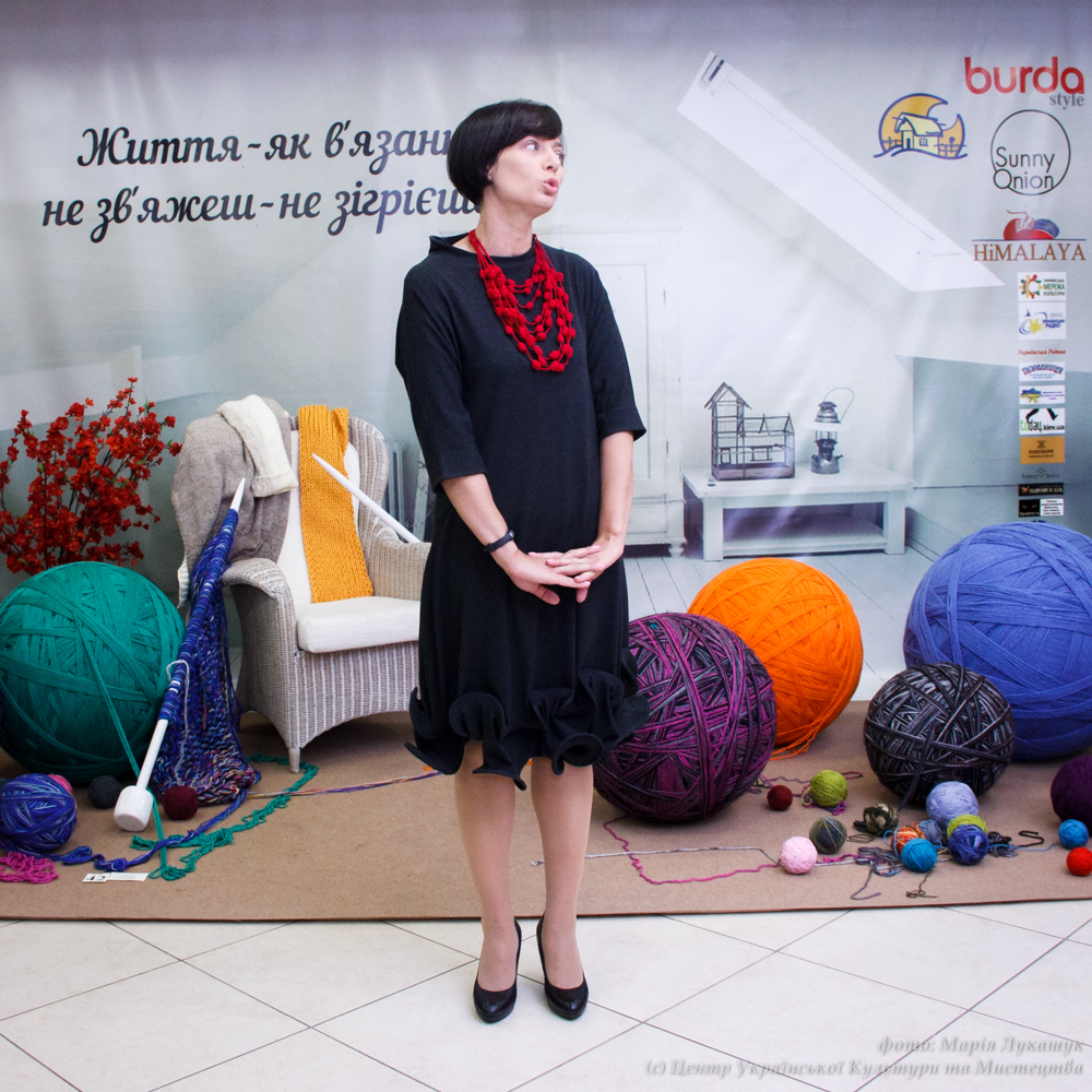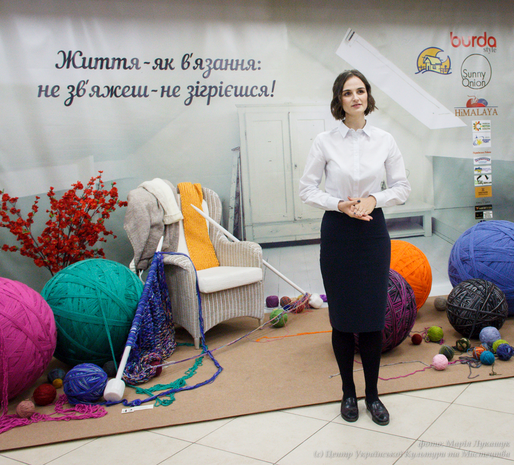 «Мені завжди було дивно, що люди, усвідомлюючи, наскільки тяжкою працею є в’язання, не задумуються над тим, що зображено на виробах, що вони уособлюють, в якому стилі вони виконані та які елементи використовують» – зазначила Олеся Вершигора, куратор виставки, засновниця бренду аксесуарів для в’язання «Sunny Onion», співзасновниця простору для в’язання Knitting Space.